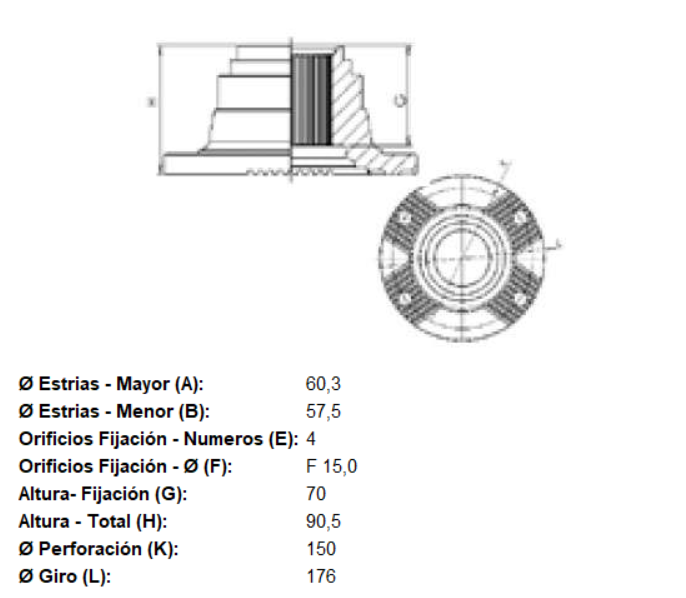 BRIDA DE CARDAN 46 ESTRIAS 4 AGUJ. SERIE SPL250
