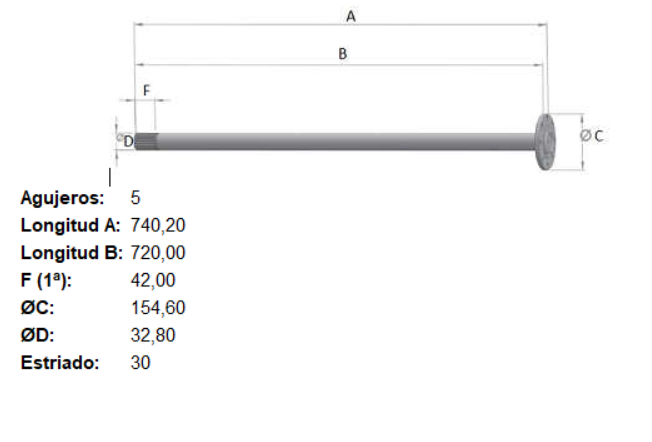 PALIER CHEVROLET S 10 MWM DANA 44-3 // 30 ESTRIAS L 720mm 5 AGUJEROS