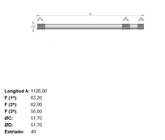 PALIER MERCEDES BENZ HL7 L 1126 MM. CON BLOQUEO