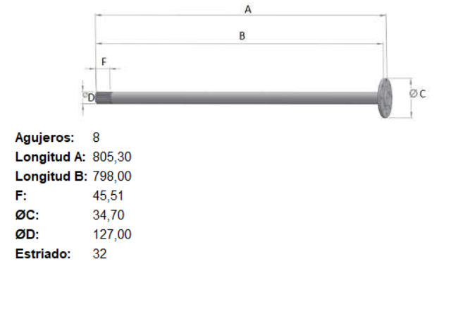 PALIER IVECO DAILY 35.10 / 55C16 32 ESTRIAS 798 mm. 8 Aguj. DANA 267
